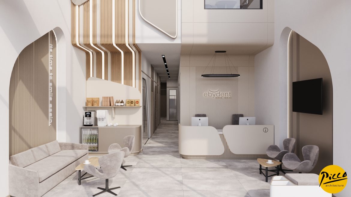 EbyDent Ağız ve Diş Sağlığı Polikliniği, Gaziantep ilinde 315 m2 kapalı alanı bulunan klinikte 4 adet box planlanmıştır. Bu modern kliniğin tasarımında, yüksek galeri boşluğu ile ferah bir atmosfer yaratılmıştır. Her ayrıntısında doğal tonlar kullanılarak, mekânın içindeki ferahlık hissi artırılmış ve ziyaretçilerinin huzur bulabileceği bir ortam yaratılmıştır. Her bölüm, hastaların ihtiyaçlarını karşılamak üzere tasarlanmış olup, en iyi bakım hizmetini alabilmesi için özenle planlanmıştır. 315 m²’lik geniş bir alan üzerine kurulu olan EbyDent, estetik ve konforun mükemmel bir uyum içinde birleştiği bir yapıdır. Kliniğin büyüleyici mimarisi, naturel tonları öne çıkararak doğanın huzur verici etkisini, iç mekâna taşımaktadır. Polikliniğin her köşesinde hissettirilen ferahlık, hasta bekleme alanlarından muayene odalarına kadar her alanda sağlanmaktadır.