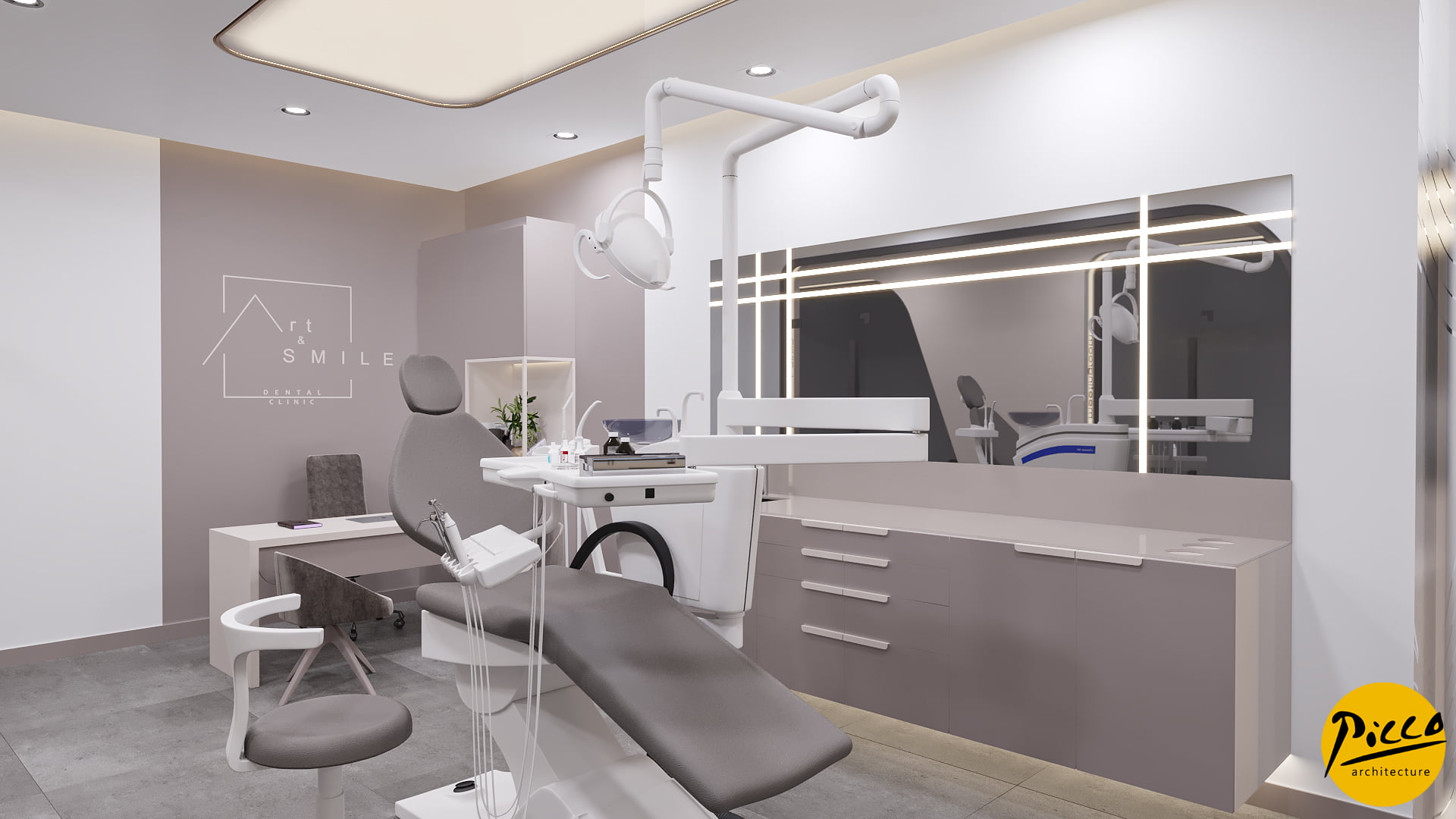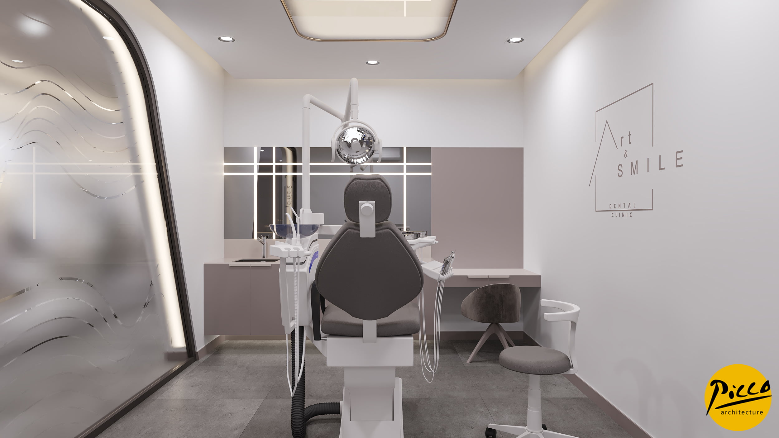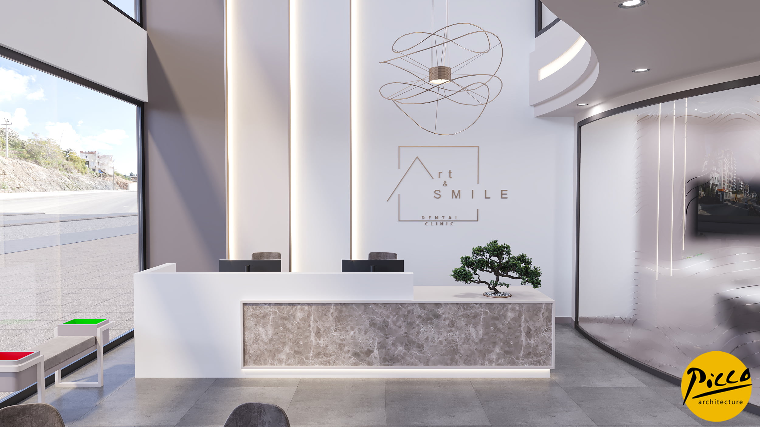 Art & Smile Oral and Dental Health Polyclinic, 5 boxes are planned in the clinic, which has a closed area of 520 m2 in Ankara. The combination of soft colors and curved lines complement each other in its design. The depth of the gallery space is supported by linear wall designs. Room entrances are limited with linear lighting. The design is supported with soft color transitions.