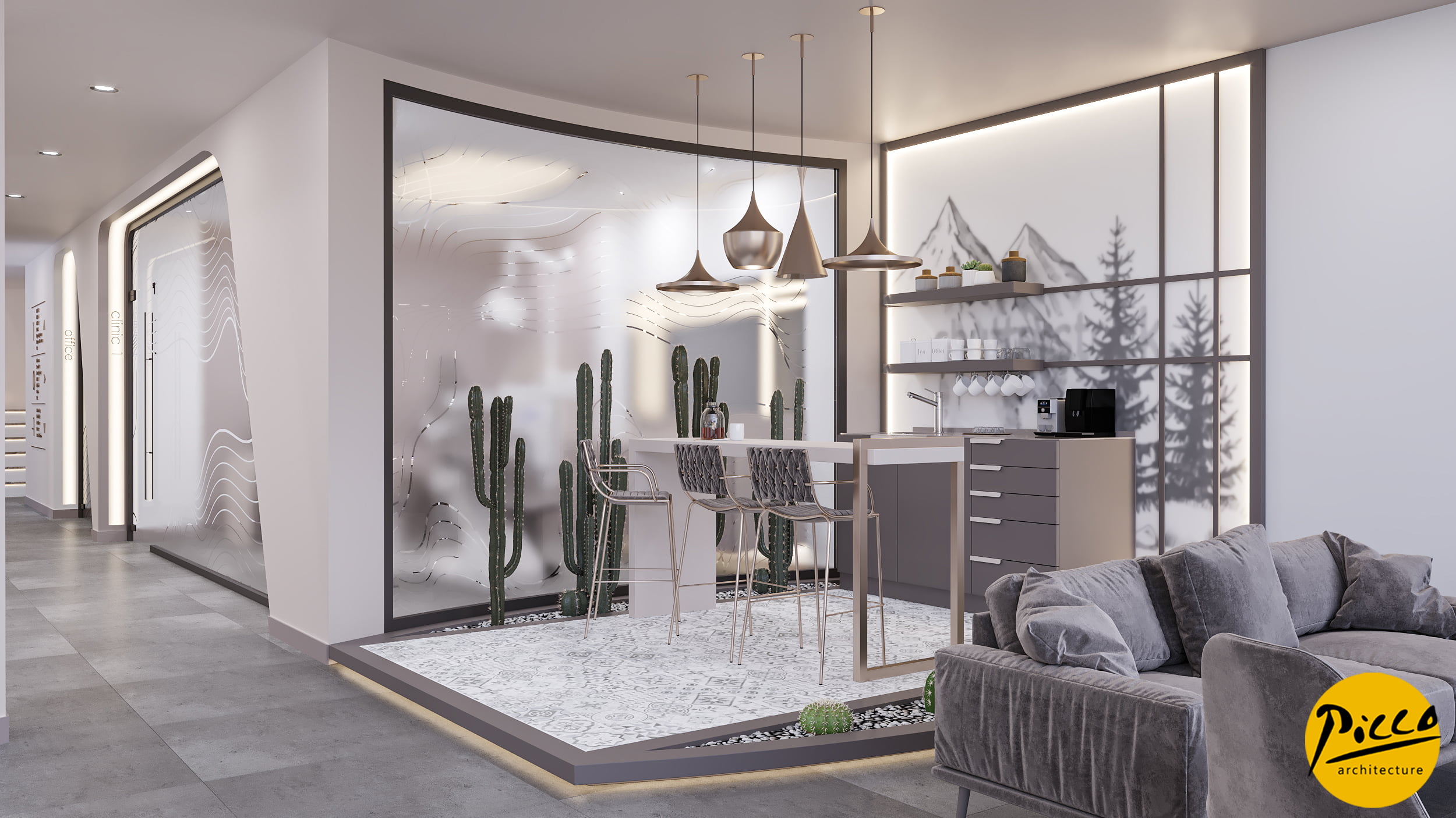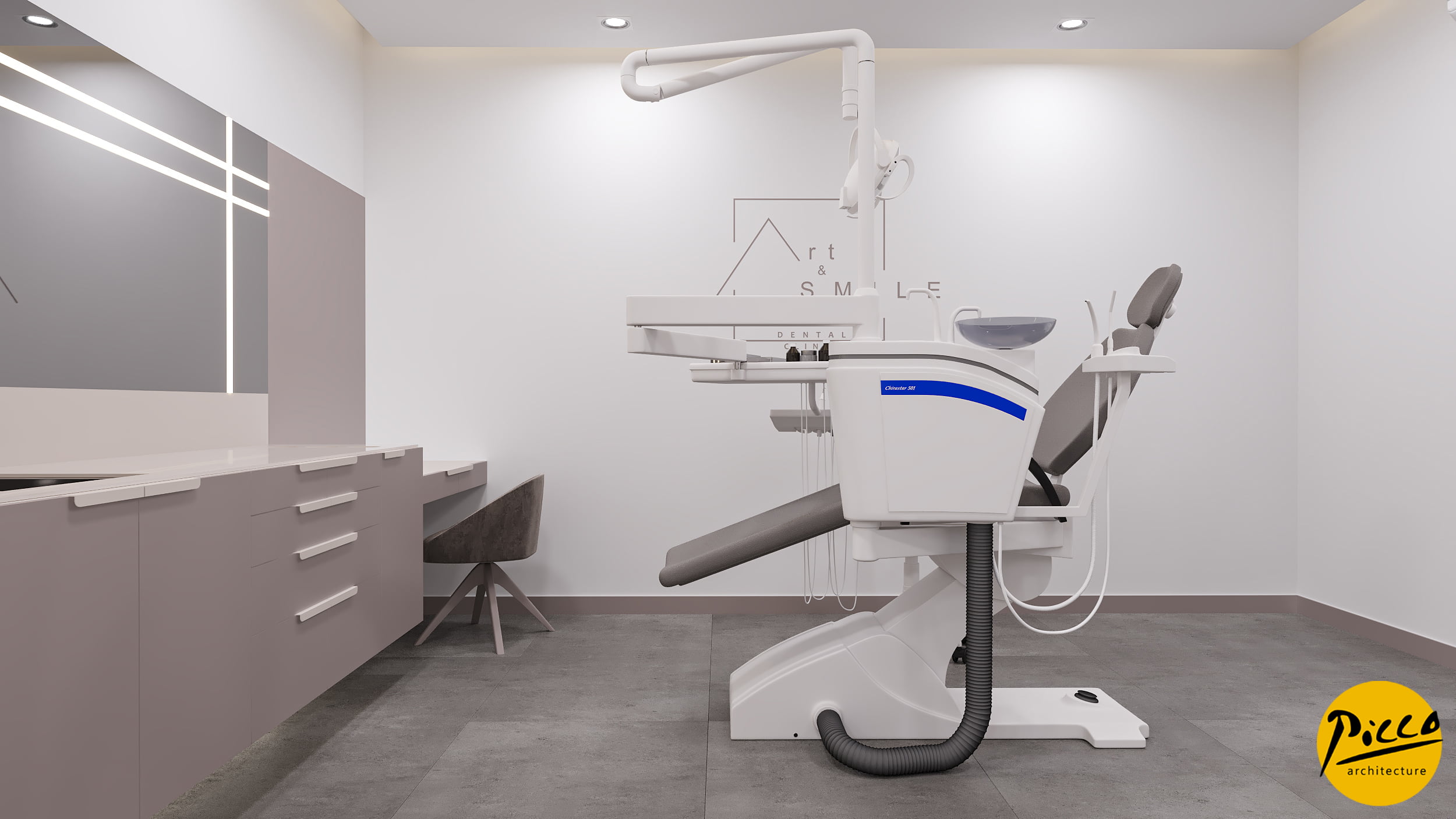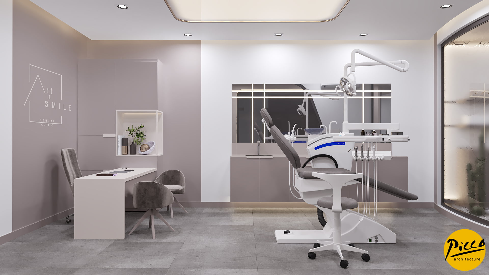 Art & Smile Oral and Dental Health Polyclinic, 5 boxes are planned in the clinic, which has a closed area of 520 m2 in Ankara. The combination of soft colors and curved lines complement each other in its design. The depth of the gallery space is supported by linear wall designs. Room entrances are limited with linear lighting. The design is supported with soft color transitions.