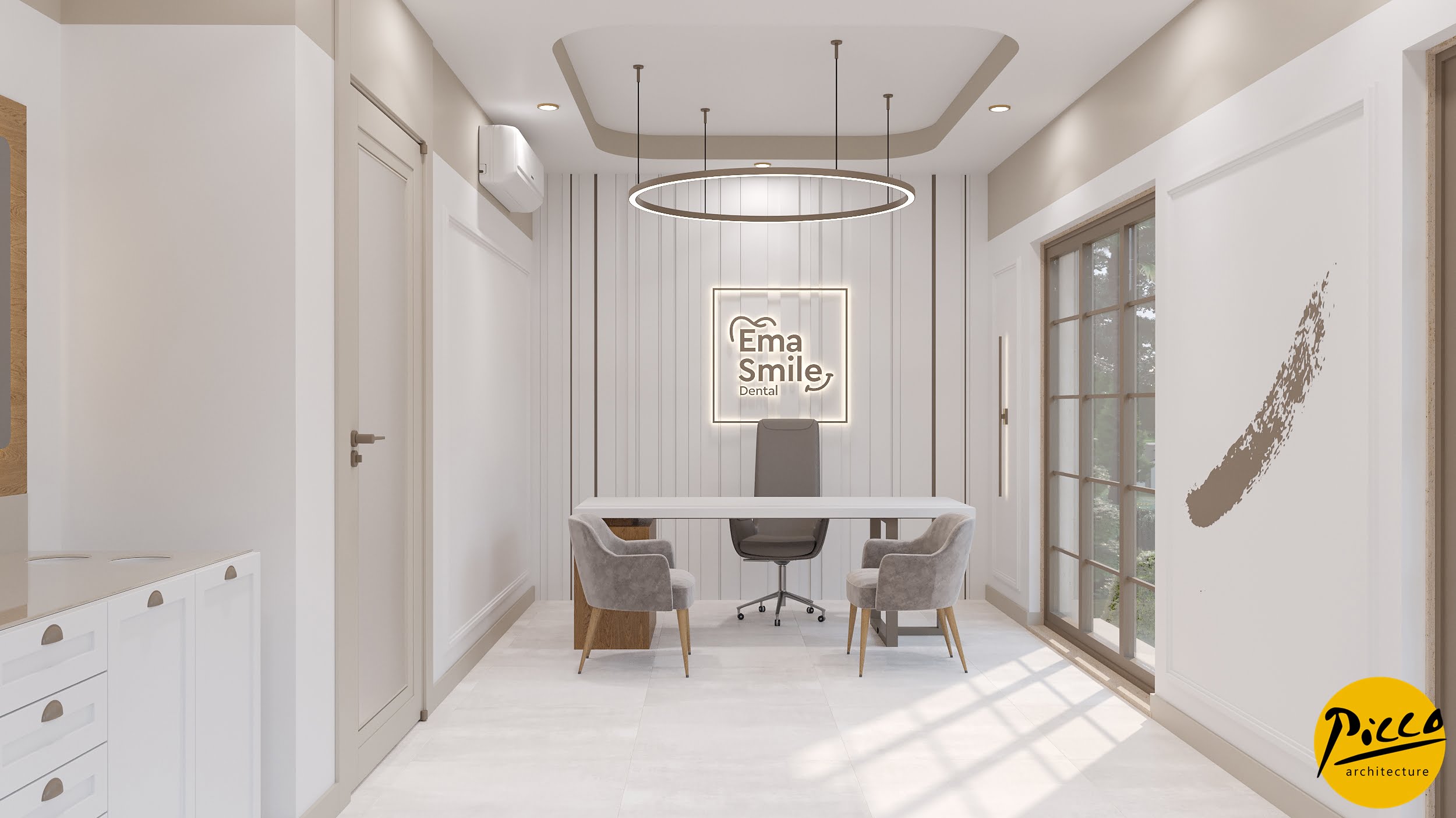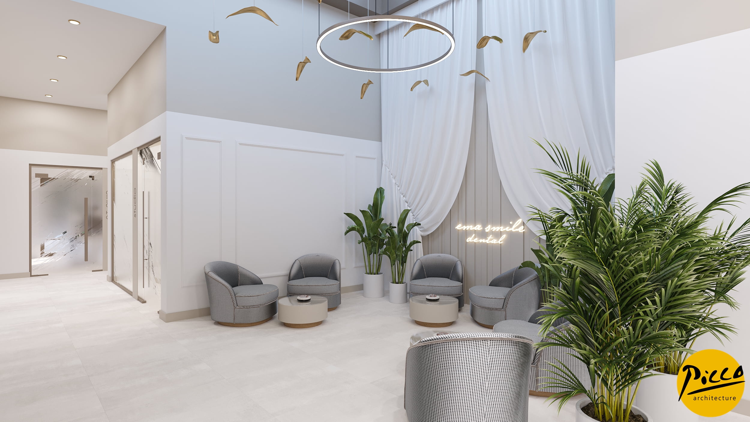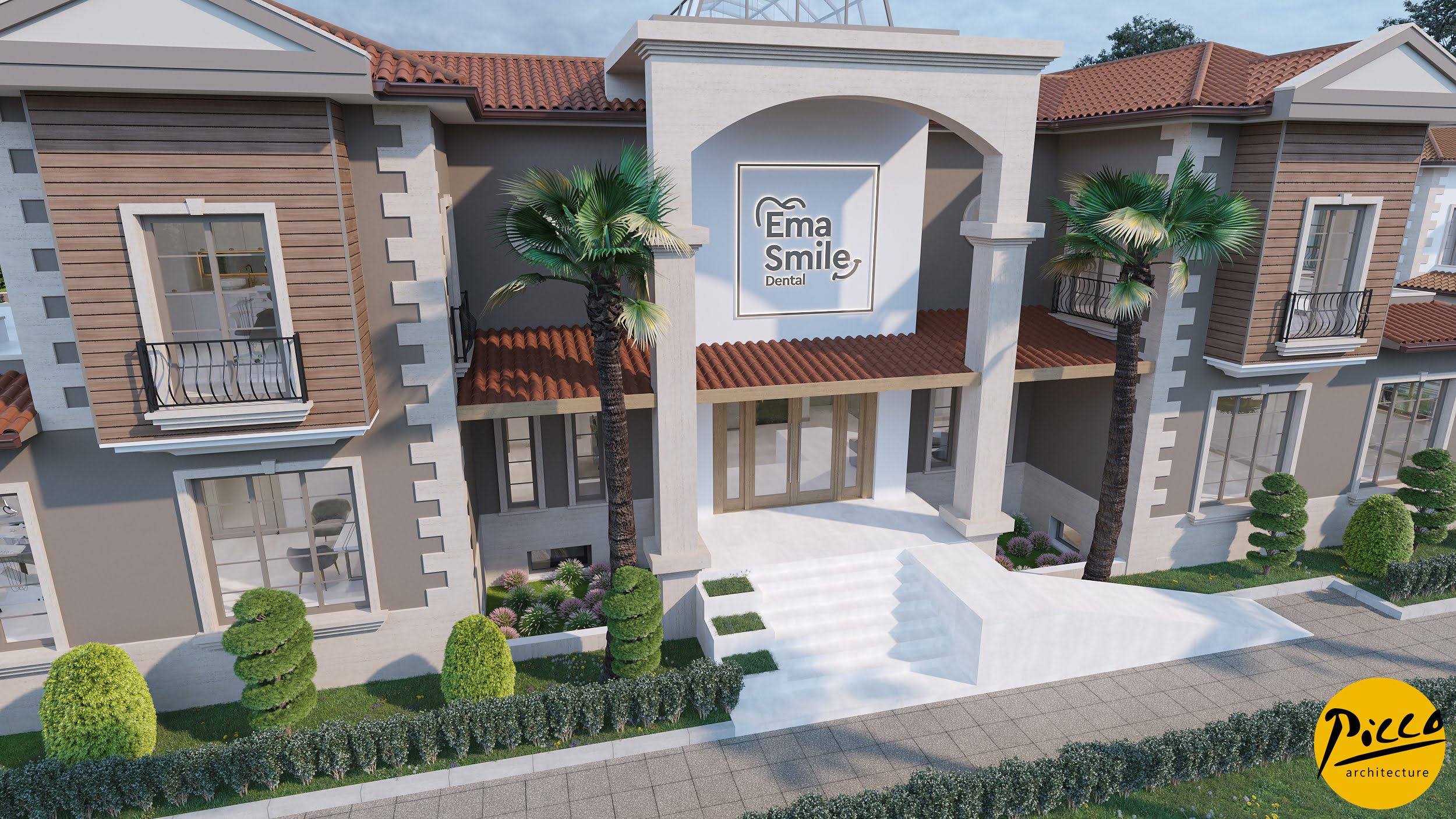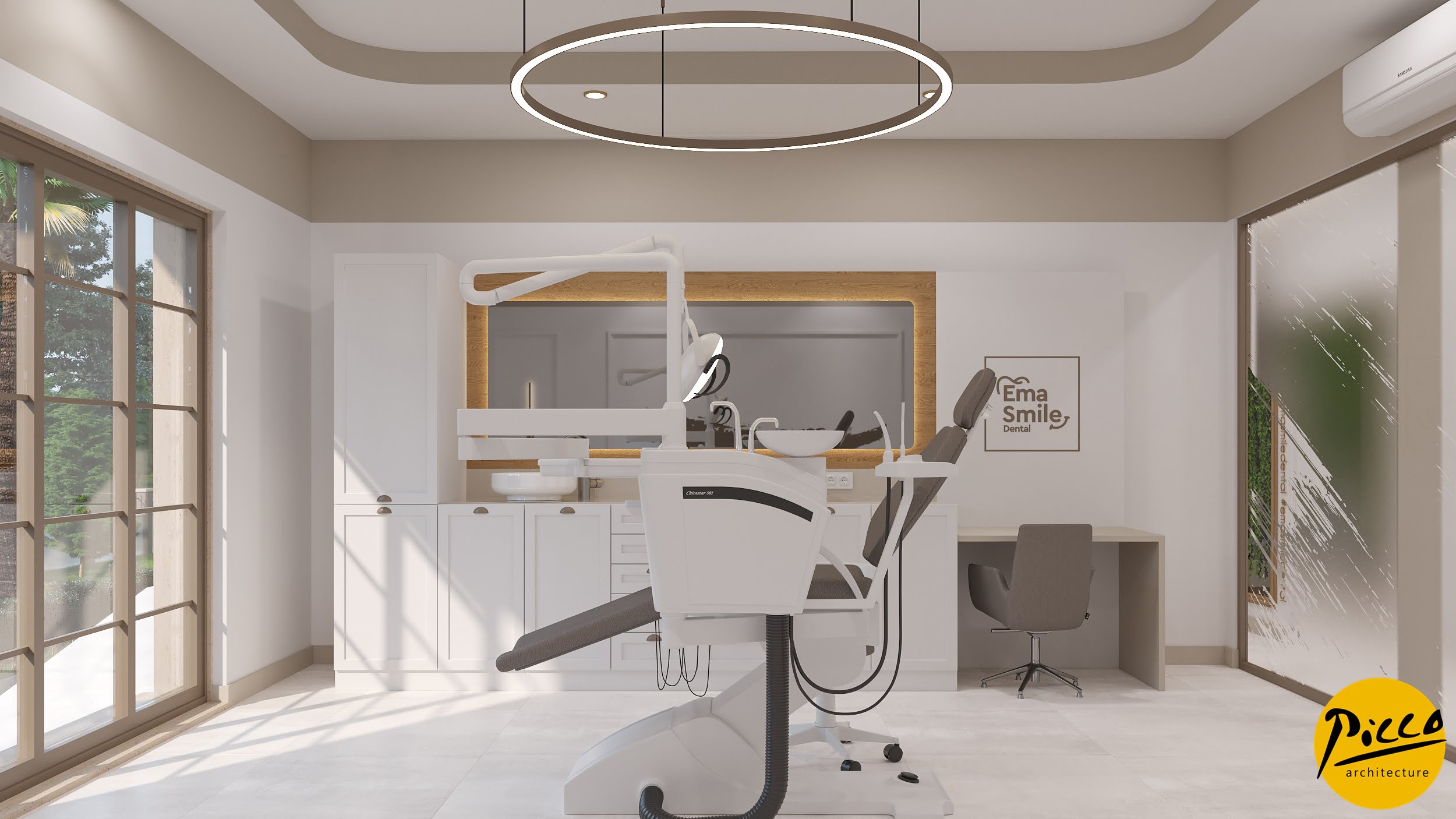 Ema Dental Oral and Dental Health Polyclinic, 11 boxes are planned in the clinic with 1600 m2 closed and 4000 m2 open area in Antalya province. A swimming pool is planned in the garden so that the patients can have a pleasant time. The garden of the clinic also hosts many activities. In the design, a simple design with light colors was used to adapt to the building structure. It is integrated with earth tones and natural greenery.