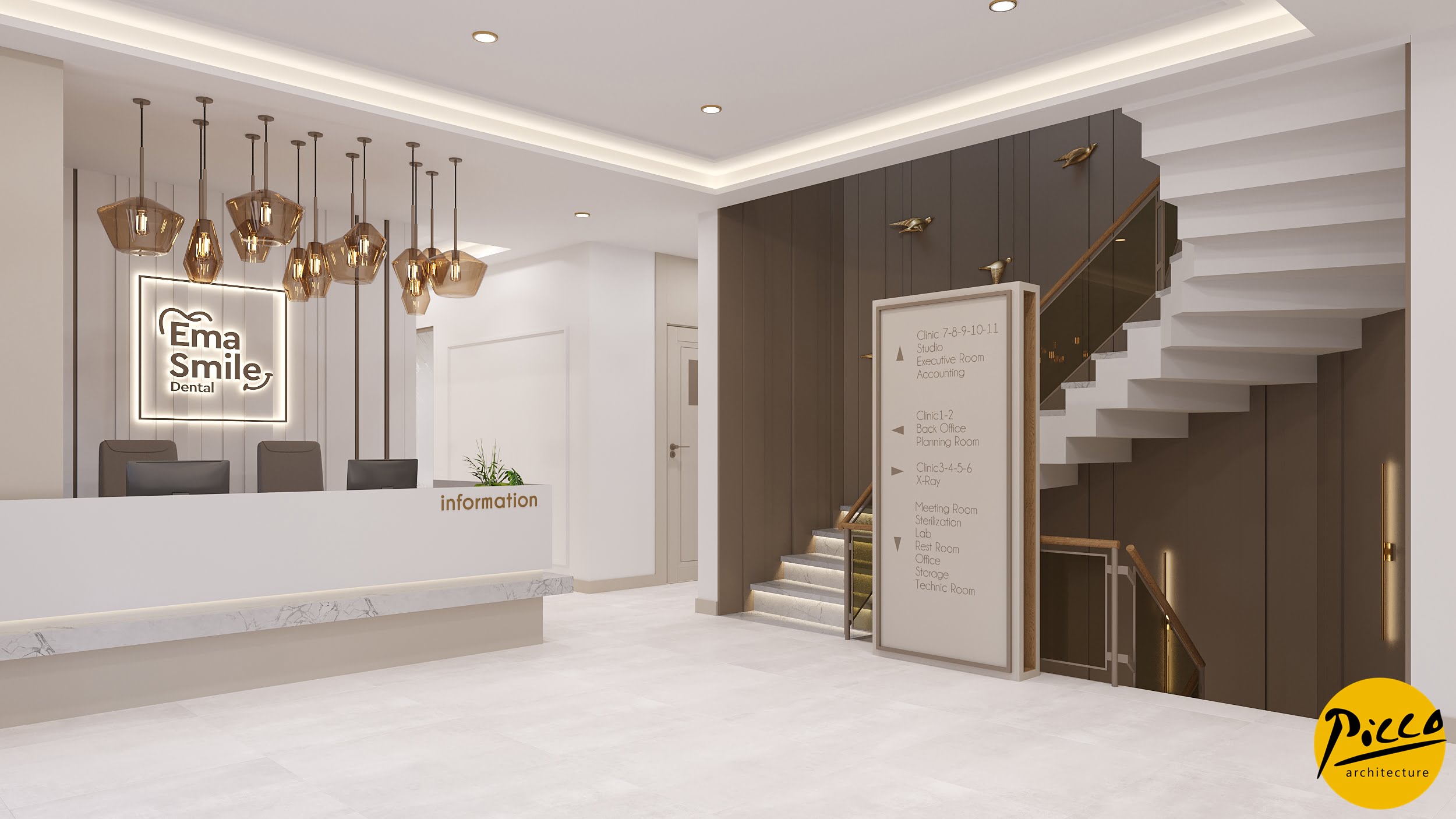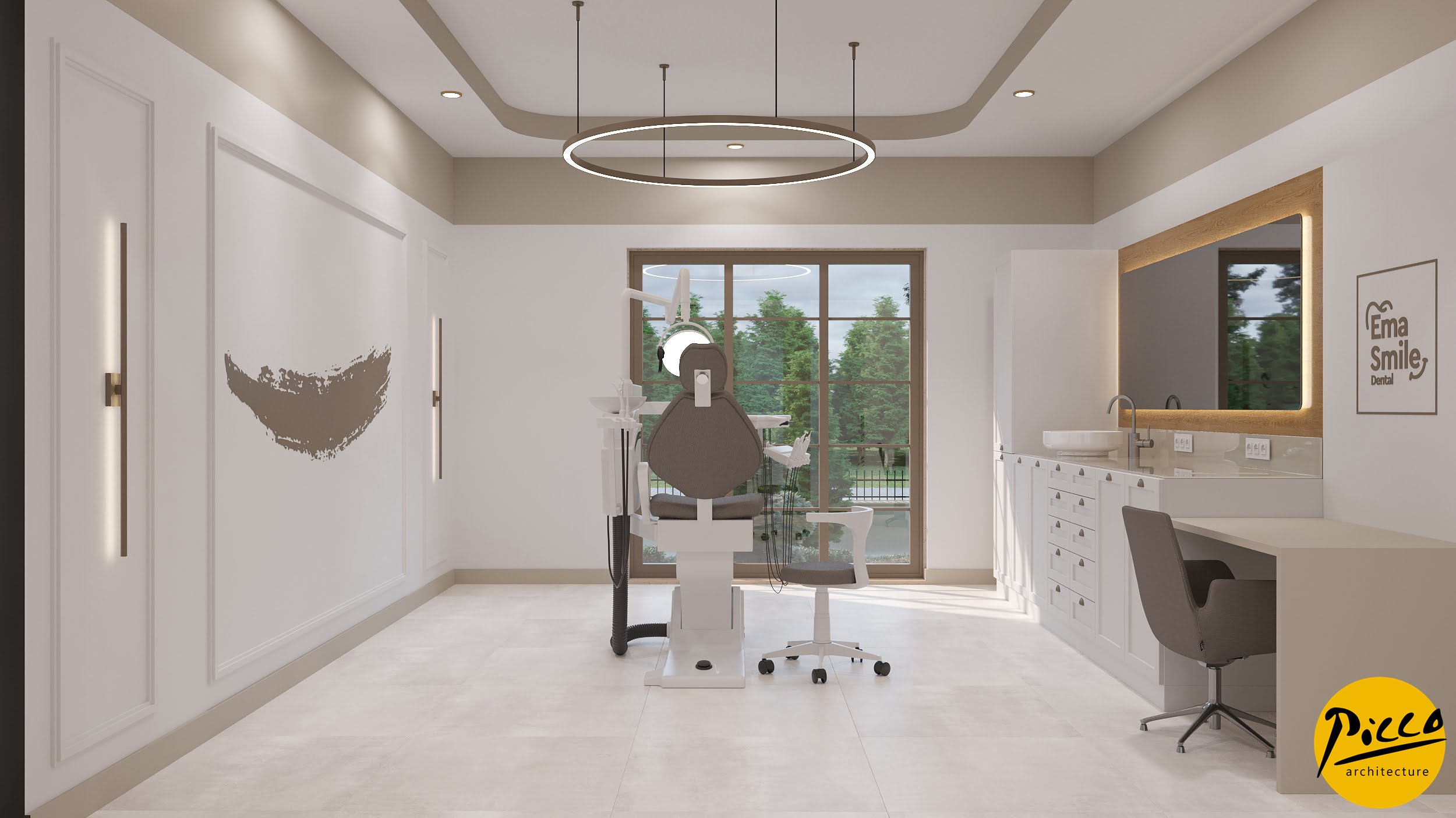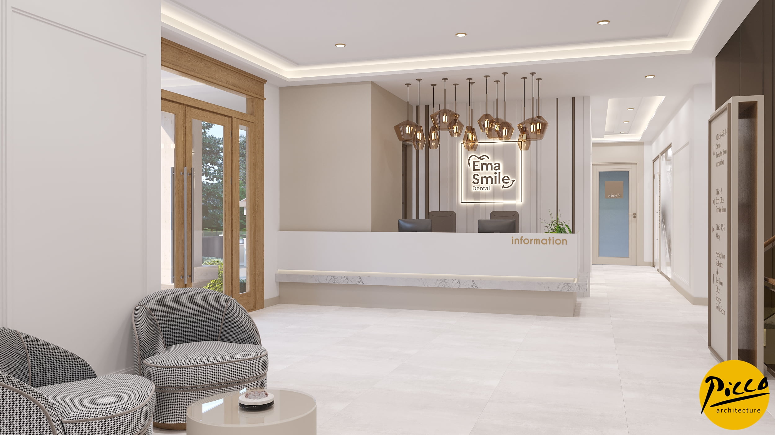 Ema Dental Oral and Dental Health Polyclinic, 11 boxes are planned in the clinic with 1600 m2 closed and 4000 m2 open area in Antalya province. A swimming pool is planned in the garden so that the patients can have a pleasant time. The garden of the clinic also hosts many activities. In the design, a simple design with light colors was used to adapt to the building structure. It is integrated with earth tones and natural greenery.
