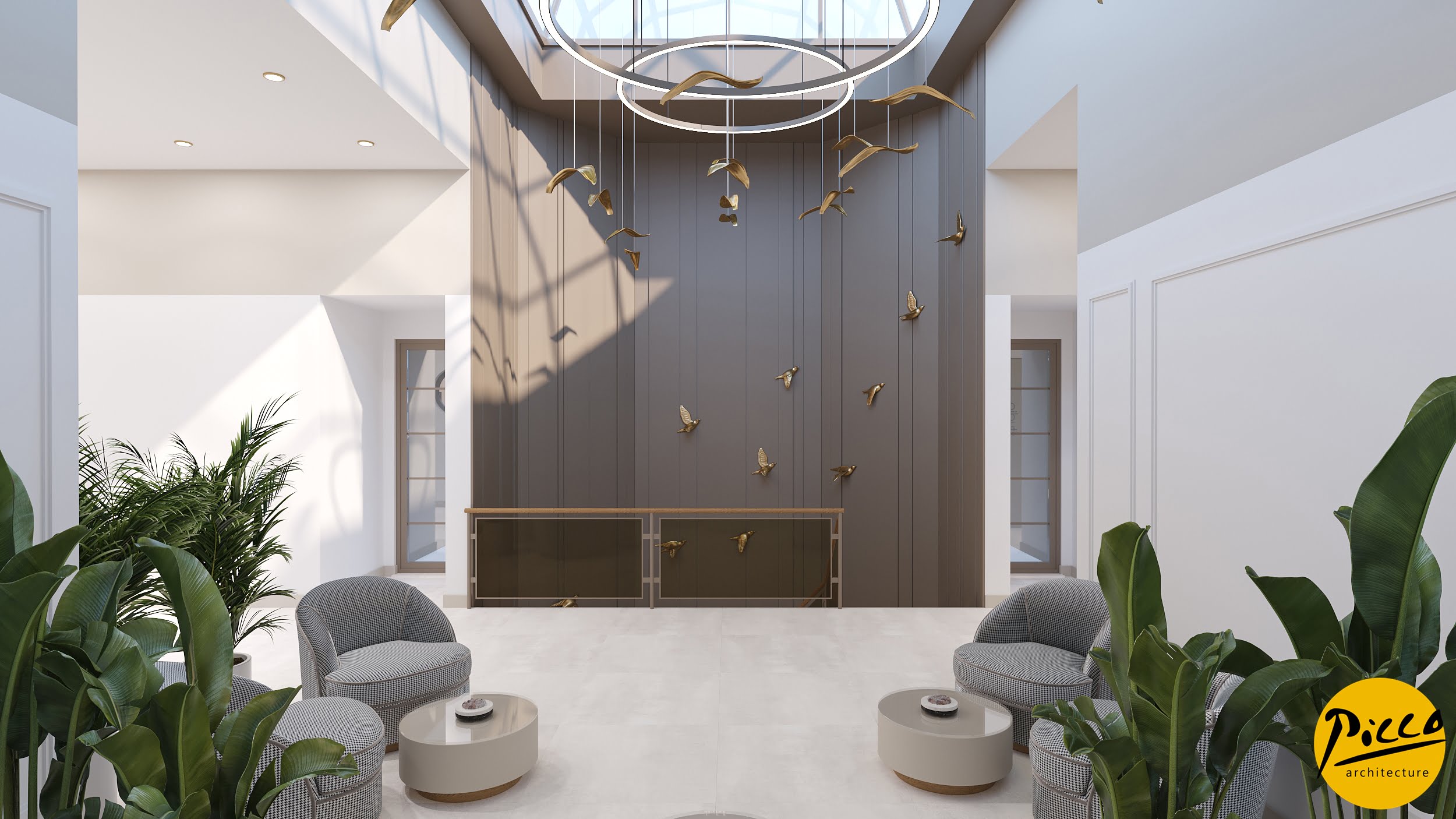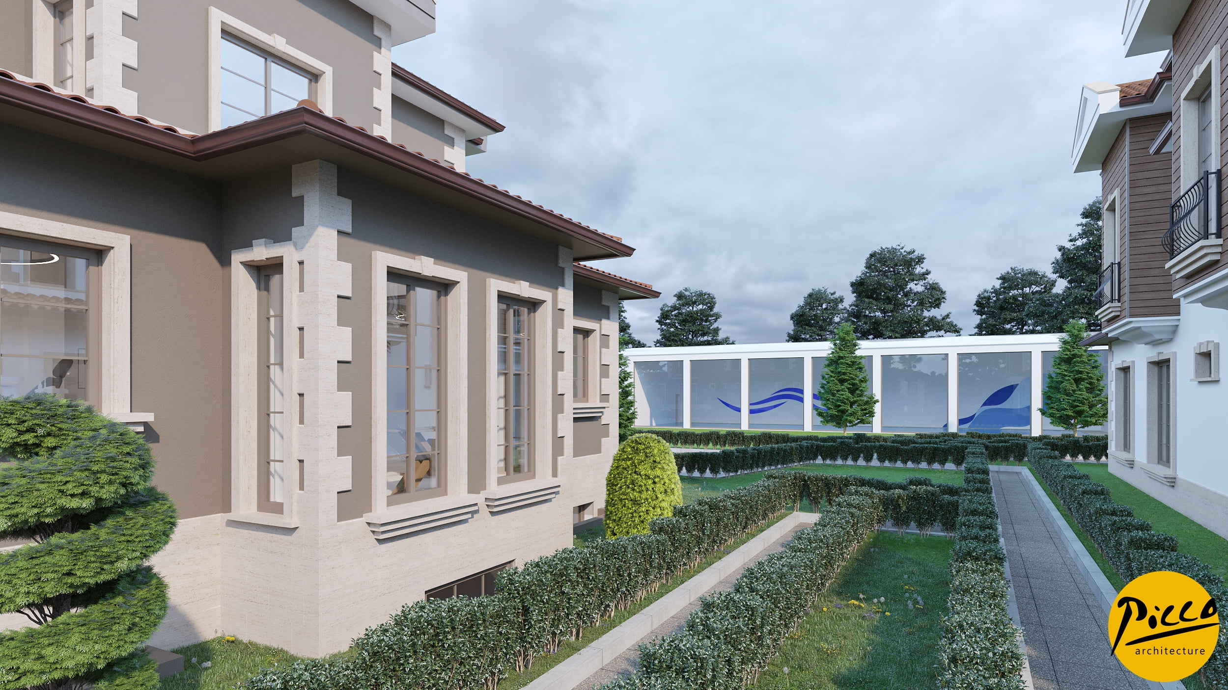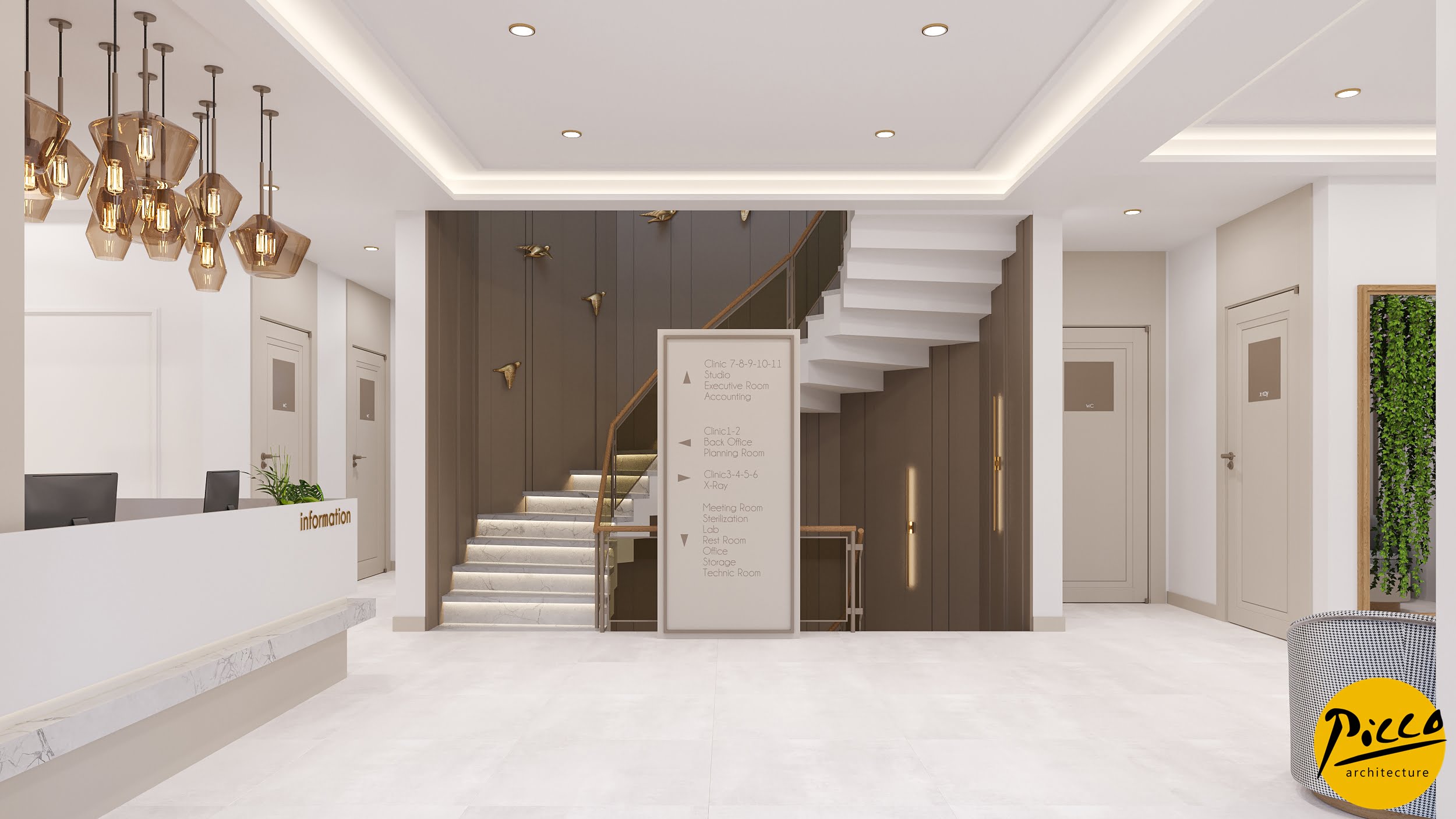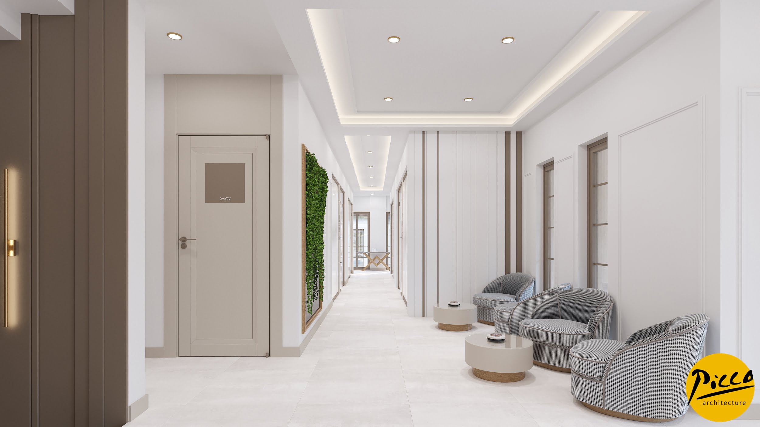 Ema Dental Oral and Dental Health Polyclinic, 11 boxes are planned in the clinic with 1600 m2 closed and 4000 m2 open area in Antalya province. A swimming pool is planned in the garden so that the patients can have a pleasant time. The garden of the clinic also hosts many activities. In the design, a simple design with light colors was used to adapt to the building structure. It is integrated with earth tones and natural greenery.