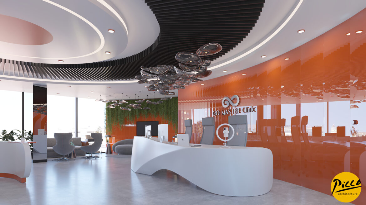 Go Master Oral and Dental Health Clinic, located in the Nişantaşı district of Istanbul, is planned with 7 boxes in a clinic covering a closed area of 720 m². The design incorporates sloping and oval forms. Orange has been used to soften the contrast between black and white and to shape the design. A design philosophy that does not want to detach from nature has led to the creation of natural green spaces. Textures and colors support each other. Strips on the ceiling provide guidance throughout all the units inside.