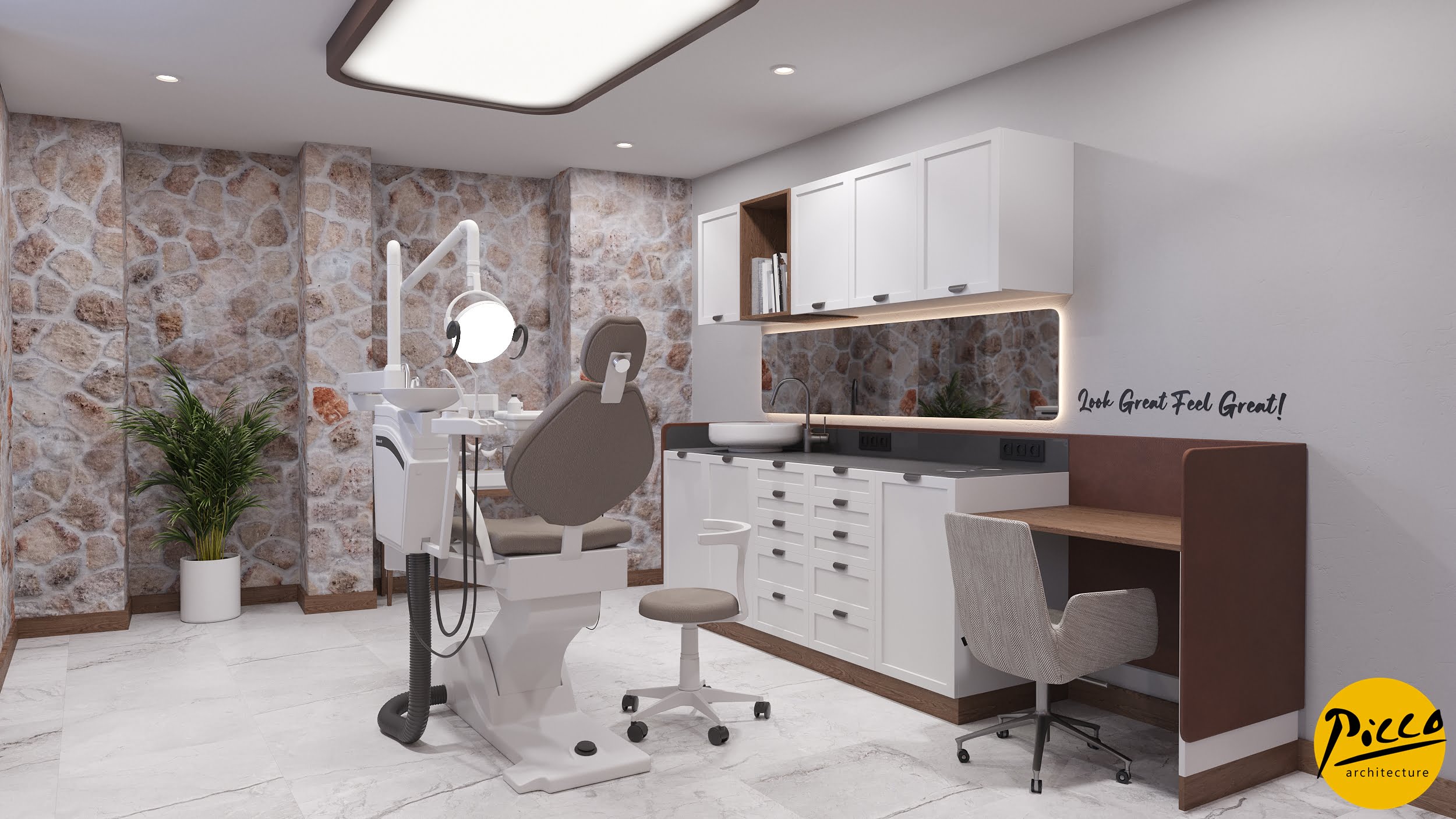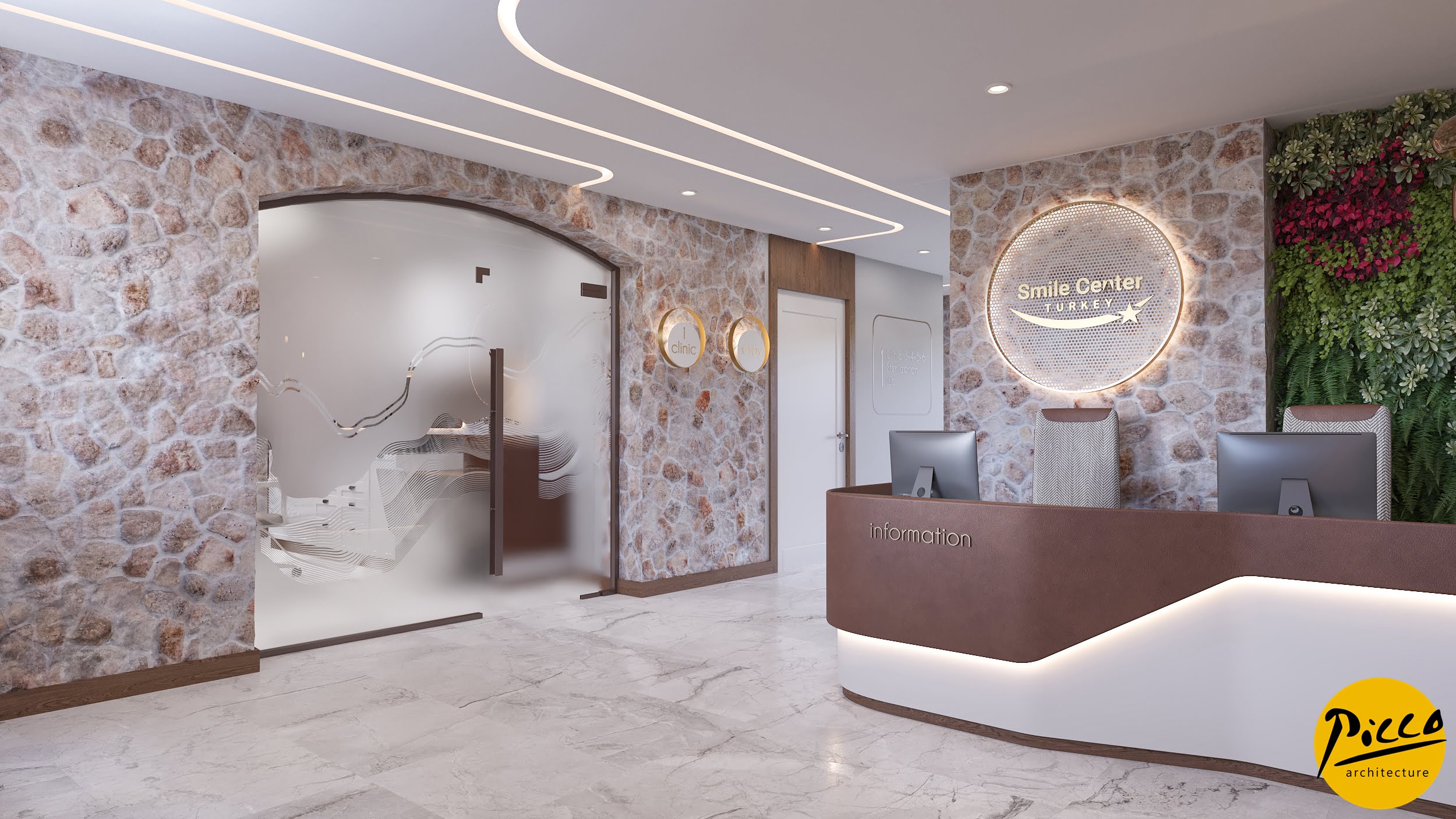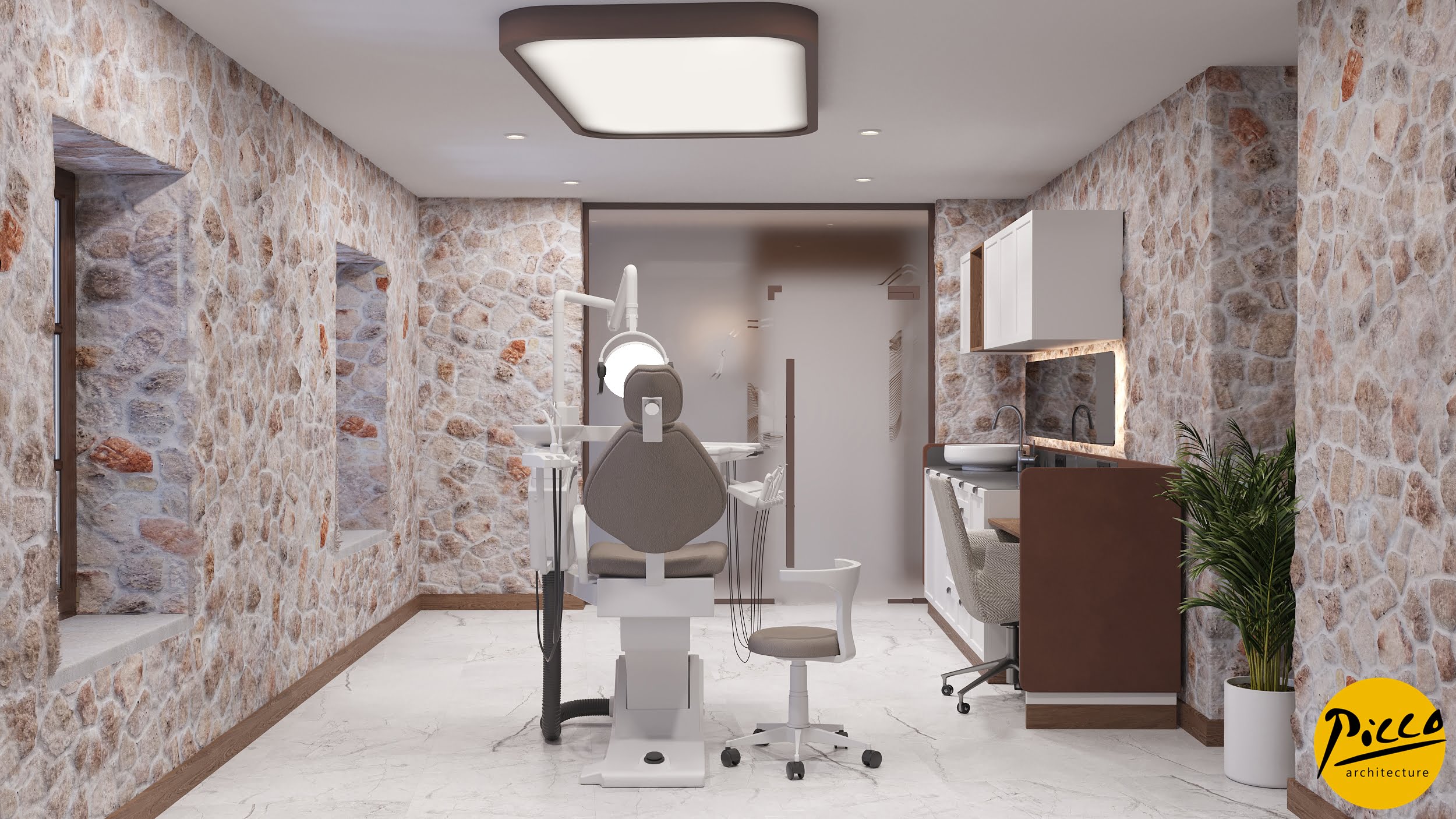 Milim SCT Oral and Dental Health Polyclinic, 6 boxes are planned in the clinic with 280 m2 closed and 1000 m2 open area in Antalya Kaleiçi. In the garden, recreation and hobby areas are planned for the patients to have a pleasant time. The design was completed by adapting to the building structure in harmony without moving away from the effect of the historical building under protection. In some areas, modern spaces have been created that integrate with the historical texture.