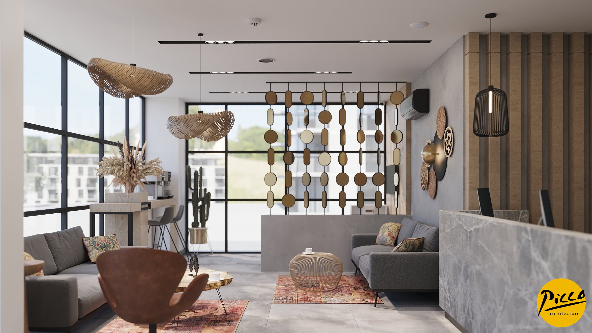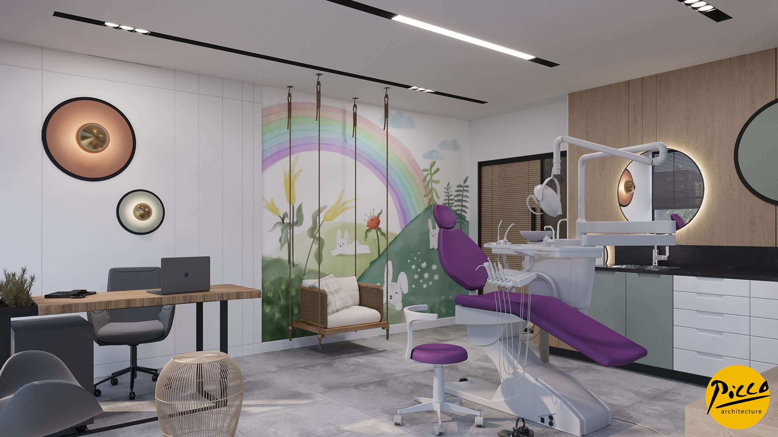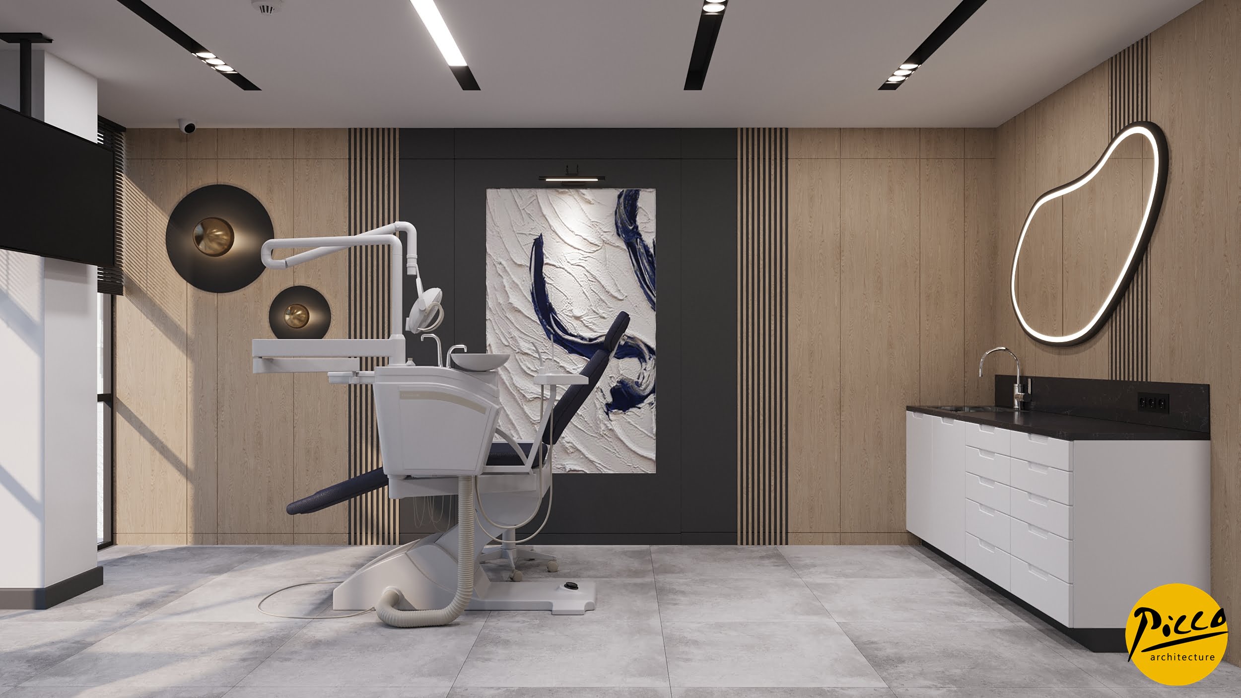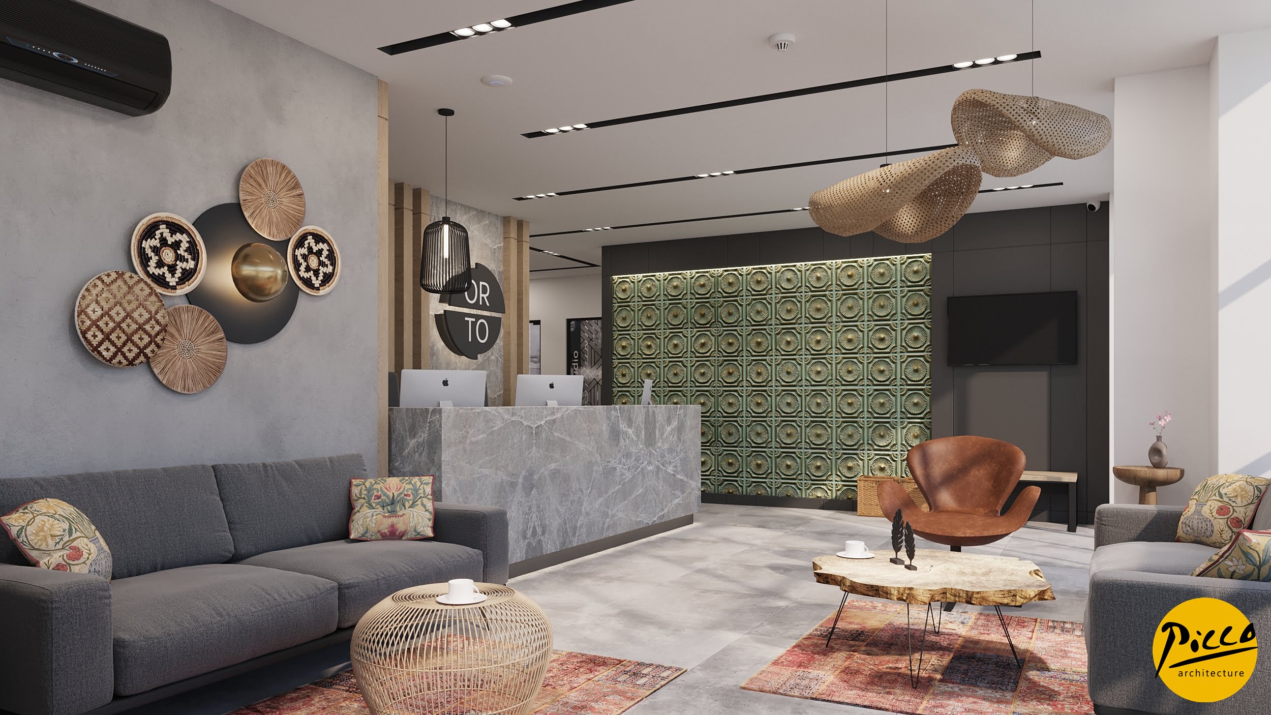 Orto Oral and Dental Health Polyclinic was planned and designed in a 3900 m2 closed area in İzmir province. It has been completed with a design approach made with natural materials without breaking away from the structure of nature. The textures were used in their most natural state to support the bohemian design concept. Different forms have come together in the design, which is completed with dark colors and the warmth of wood.