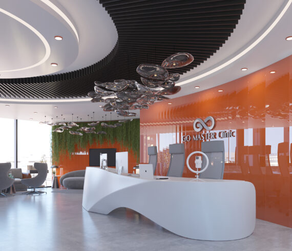 Proje Adı: Go Master Ağız ve Diş Sağlığı Polikliniği Yapım Yılı: 2023 Box Adeti: 7 Adet M² : 720 m² Konum: İstanbul Uygulama Şekli: Proje + Uygulama Go Master Ağız ve Diş Sağlığı Polikliniği, İstanbul ili Nişantaşı ilçesinde 720 m2 kapalı alanı bulunan klinikte 7 adet box planlanmıştır. Tasarımda eğimli ve oval formlar kullanılmıştır. Beyaz ve siyah kontrastını yumuşatmak için turuncu renk ile tasarıma şekil verilmiştir. Doğandan kopmak istemeyen bir tasarım anlayışı ile doğal yeşil alanlar oluşturulmuştur. Dokular ve renkler birbirini desteklemiştir. Tavanda bulunan çıtalar içeride ki tüm birimlere yönlendirme sağlamıştır.