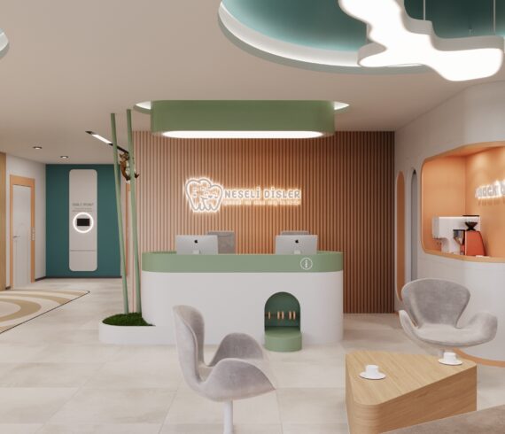 Proje Adı: Neşeli Dişler Ağız ve Diş Sağlığı Polikliniği Yapım Yılı: 2024 Box Adeti: 6 Adet M² : 450 m² Konum: Ankara Uygulama Şekli: Proje Neşeli Dişler Ağız ve Diş Sağlığı Polikliniği, Ankara ilinde 450 m2 kapalı alanı bulunan klinikte 6 adet box planlanmıştır. Poliklinik çocuklar için tasarlanmıştır. Tüm detaylar çocukların klinikten korkmadan güvenle vakit geçirmesi ve eğlenmesi için dikkatle tasarlanmıştır. Projelendirmede onların dünya bakış açısı ve yaklaşımı ile yola çıkılmıştır. Tasarım renklerinde soft renkler çocukları rahatlatan ortamla uyum sağlaması için dikkatle seçilmiştir. Mekânda tüm köşeler yumuşak hatlar ile tasarlanmıştır. İçeride bulunan birçok hayvan figürü ile birlikte çocukların eğlenmeleri amaçlanmıştır.
