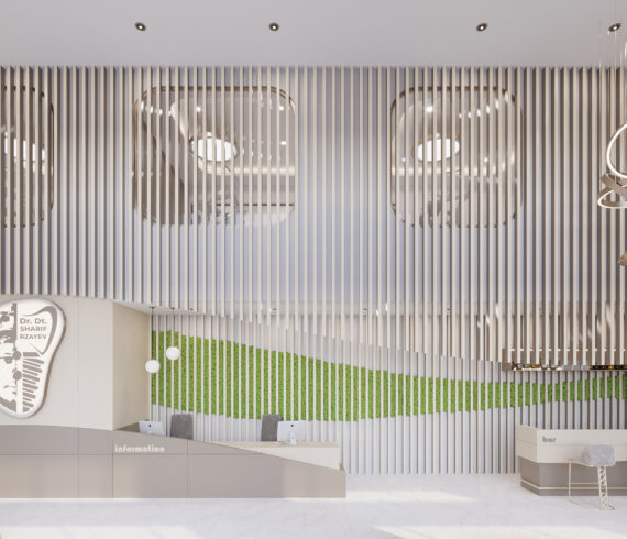 Proje Adı: NKD Ağız ve Diş Sağlığı Polikliniği Yapım Yılı: 2024 Box Adeti: 4 Adet M² : 575 m² Konum: Kuşadası – Aydın Uygulama Şekli: Proje NKD Ağız ve Diş Sağlığı Polikliniği, Aydın ili Kuşadası ilçesinde 575 m2 kapalı alanı bulunan klinikte 4 adet box planlanmıştır. Derin tavan yüksekliği ile eğrisel form tüm bekleme alanında derinlik sağlamak için kullanılmıştır. Göz sınırlarını hizalamak için çizgisel hatlarla duvarlarda kontrast renk detayları çalışılmıştır. Renk geçişlerinde soft kontrast renkler kullanılmış gün ışığı ile birlikte ferah bir ortam amaçlanmıştır. Bina mimarisi gereği uzun bir yerleşim olması sebebi ile duvar bitimlerinde oval formlar ile mekân yumuşatılmıştır. İç mekân cam giydirmelerinde yine eğrisel formlar ile desteklenmiştir.