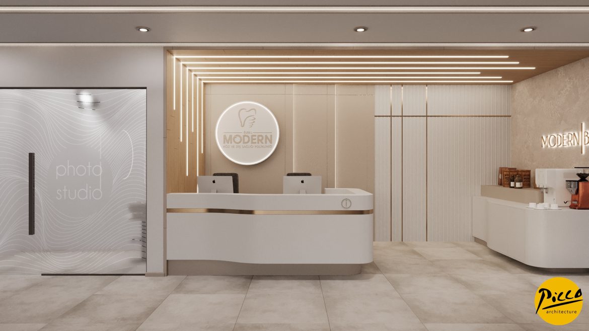 Modern Ağız ve Diş Sağlığı Polikliniği, Antalya ili Manavgat ilçesinde 430 m2 kapalı alanı bulunan klinikte 6 adet box planlanmıştır. Modern mimarisi, estetik çizgileri ve işlevselliği ile dikkat çeken bu poliklinik, hasta odaklı yaklaşımı ile ağız ve diş sağlığında mükemmel bir deneyim sunmayı hedefliyor. İç mekânlarda kullanılan açık renk tonları ve sade tasarım detayları, hem ferahlık hissi veriyor hem de huzurlu bir ortam yaratıyor. Polikliniğin parlak yüzeyler ile donatılmış iç mekanları, hem estetik hem hijyenik bir yaklaşımla tasarlanmış olup, misafirlerin kendilerini rahat hissetmesi için özenle düşünülmüştür. Ayrıca, bekleme alanları tasarlanırken hastaların ve yakınlarının rahat etmesi hedeflenmiş, ferah ve aydınlık alanlar oluşturulmuştur.